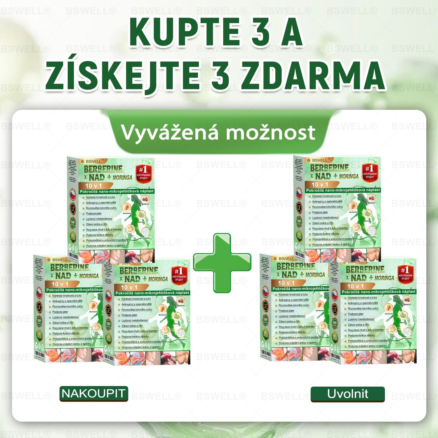 BSWELL® Moringa · Berberine × NAD+ – 10v1 Pokročilá nano mikrovpichová náplast